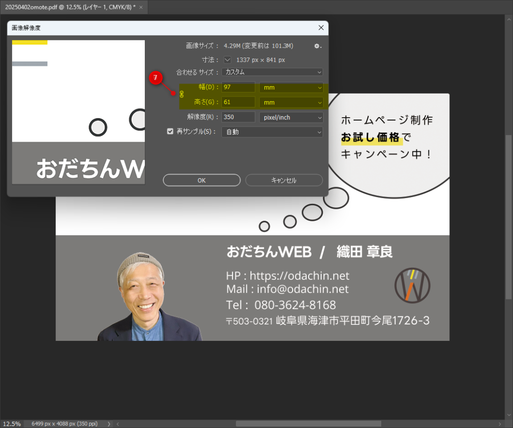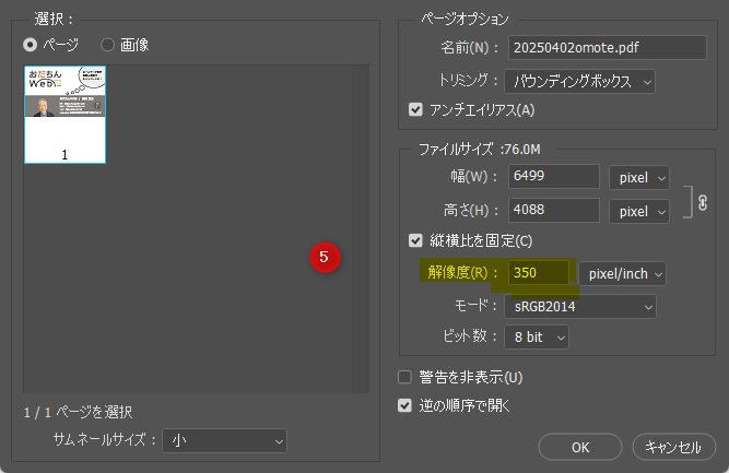 で解像度を97 x 61 mmに変換- PDFファイルとして保存(